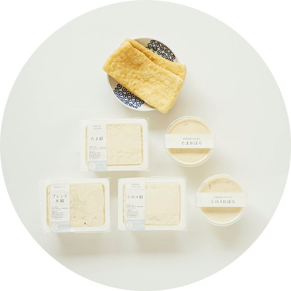 兎豆屋では大豆そのものにこだわっており、日本各地の美味しい大豆をもっと多くの方々に知って頂きたいという思いから、商品名には大豆の名前をつけています。例えば、ミヤギシロメの絹豆腐は「シロメ絹」、香り豆のおぼろ豆腐は「香おぼろ」、秘伝豆の油揚げは「秘伝揚げ」のようになっています。また、希少大豆や珍しい大豆を使ったお豆腐を、季節ごとに期間限定でご提供しています。様々な大豆の商品を食べくらべて楽しんで頂けたら嬉しいです。